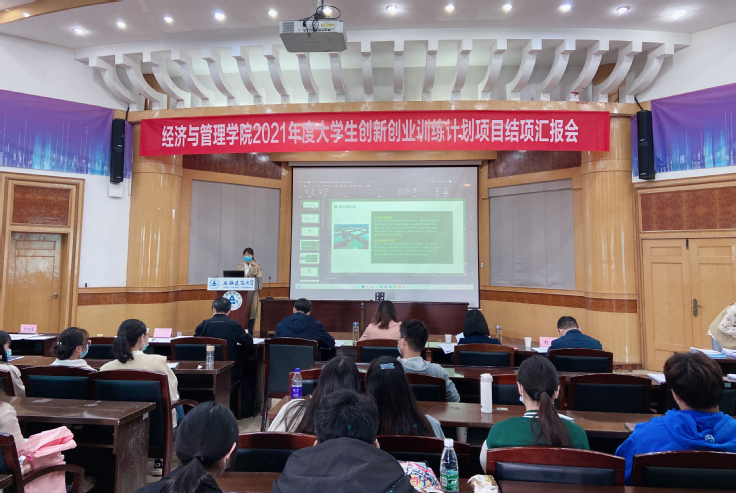 本网讯 10月14日,经管学院在北校区F楼三楼报告厅举办2021年度大学生创新创业训练计划项目结项汇报会。汇报会邀请学院院长彭志胜、副院长章蓓蓓等五位教师担任评委,11组省级项目团队和17组校级项目团队成员参加。汇报会由余大纬老师主持。