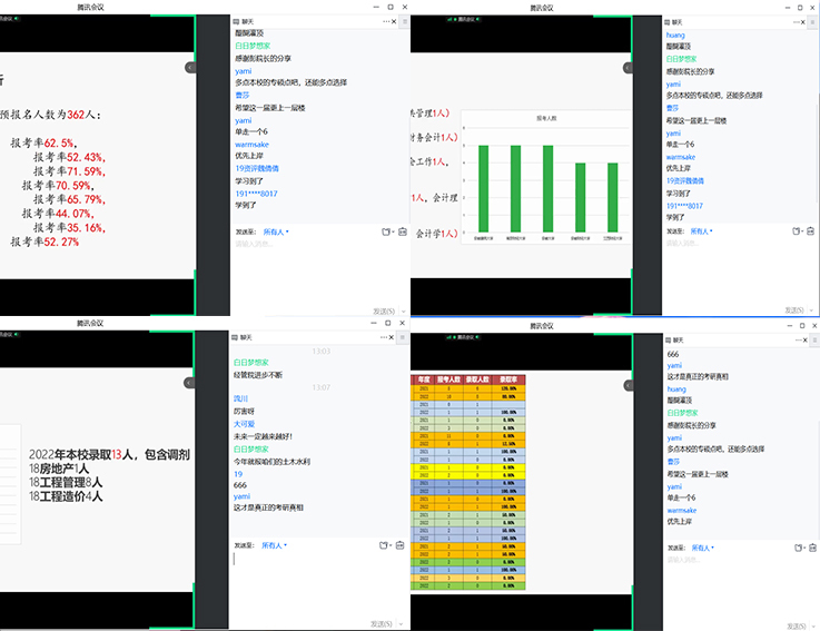 本次专题辅导帮助学生对2023年硕士研究生报考形势有了更加全面的了解,同学们纷纷表示辅导会帮助大家厘清了报考思路,后面将会根据往年的报考数据和自己的实际情况对预报名院校进行仔细衡量,早日实现考研目标。(作者:孙文;审稿:彭志胜)