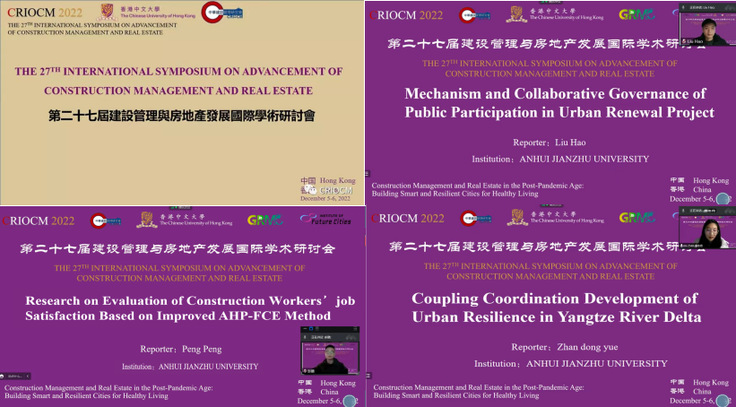 本网讯 2022年12月5-6日,第二十七届建设管理与房地产发展国际学术研讨会(CRIOCM2022)在线上成功举办。会议由中华建设管理研究会和香港中文大学联合主办,主题为“后疫情时代的建设管理和房地产:为健康生活建设智慧和韧性城市”。来自中国、澳大利亚、英国、美国等14个国家和地区的625位建设管理与房地产领域的专家及学者参与会议交流。