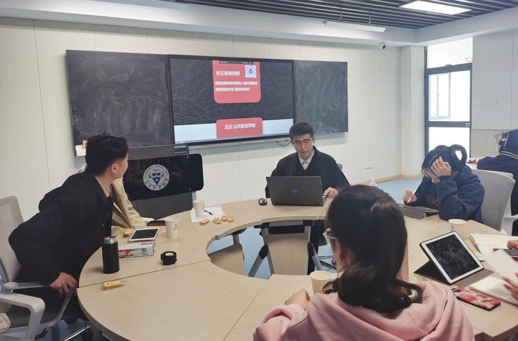 随后,公管学院硕士研究生王正以《长三角城市群绿色发展效率对城市人居环境韧性的空间溢出与门槛效应研究》为题,从绿色发展和人居环境韧性的发展历程出发,基于压力(P)、状态(S)、应对(R)三方面构建城市人居环境韧性水平,并利用熵值法和超效率SBM分别计算人居环境韧性和绿色发展效率的综合得分,进一步采用空间杜宾模型对长三角城市群进行空间效应分析。此外,针对变量间可能存在的非线性关系进行门槛模型的验证,为促进社会经济高质量发展提供政策建议和参考。