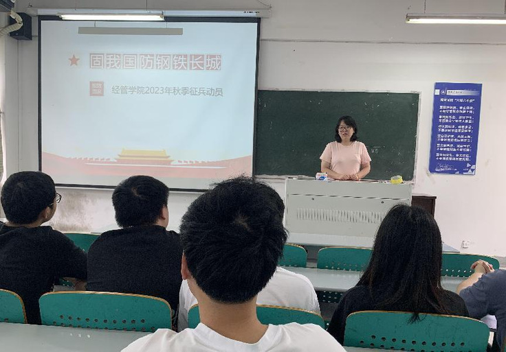 本网讯 为深入贯彻落实习近平强军思想,进一步落实学校相关征兵工作要求,鼓励和引导大学生积极应征入伍,近日,经管学院毕业班年级召开征兵宣传主题班会。