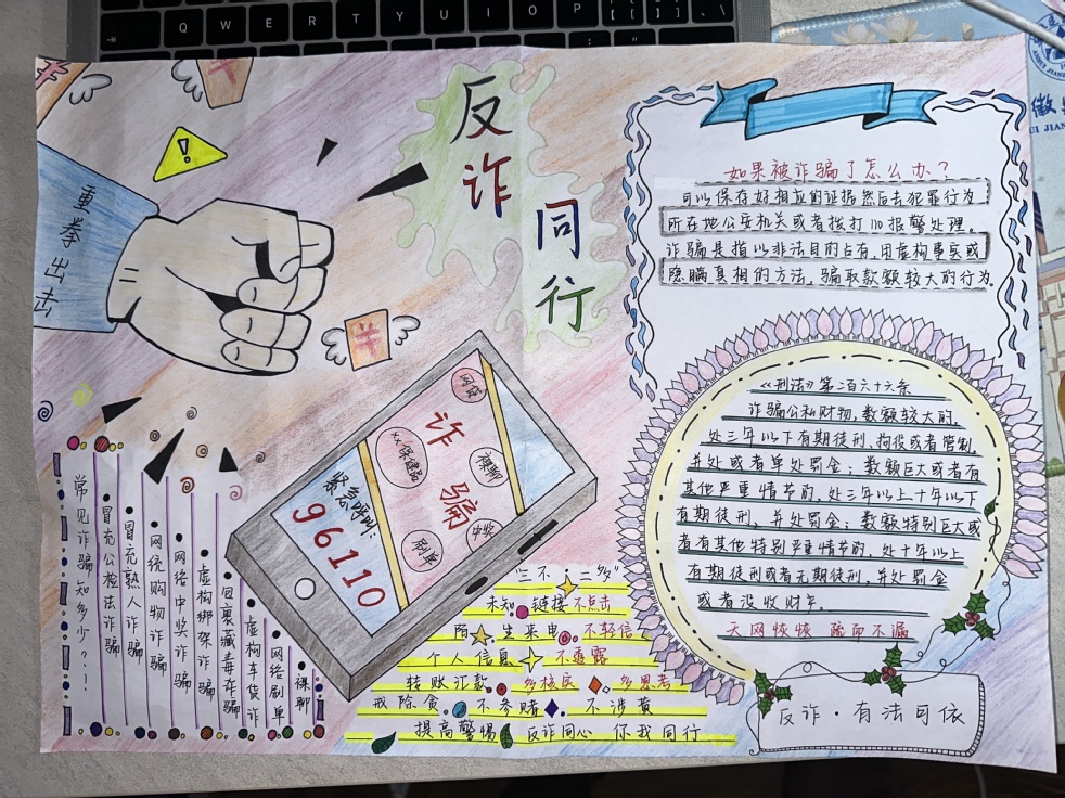 学院于4-6月开展反诈优秀作品征集,征集类型涵盖短视频、漫画、征文等形式。《防诈小课堂》《镜花水月一场》短视频普及了电信诈骗的常见手段和网络交友诈骗新手段。学生以漫画形式生动的为我们普及各种诈骗形式,警示各位在校大学生提高自我防范意识。此外开展撰写反诈征文活动,内容涉及以诈骗为目的的投资理财、刷单兼职、冒充客服、冒充朋友等诈骗类型。真正的将反诈意识融入大学生脑中,提高自我防范意识,保障自身权益不受侵害。
