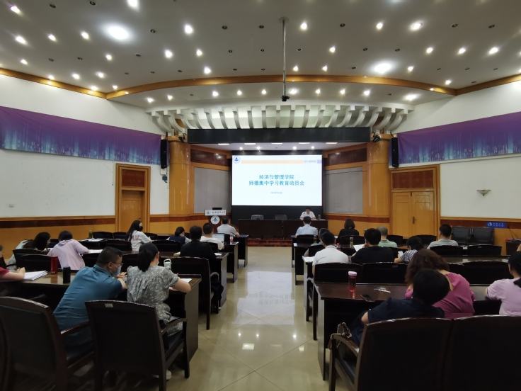 本网讯 7月5日,经济与管理学院召开师德集中学习教育动员会。会议由学院党委书记陈国中主持,学院全体教师参加会议。