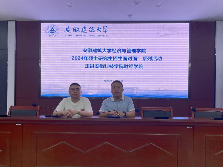 本网讯 为进一步拓展硕士研究生生源渠道,7月12日,经管学院研究生办负责人康玮与学院骨干教师徐洁、唐静一行三人前往安徽科技学院财经学院进行2024年硕士研究生招生宣传。安徽科技学院财经学院党委副书记、纪委书记耿广汉对我院招生团队表示欢迎,并组织学院暑期留校复习备考的学生50余人参加此次宣讲会。