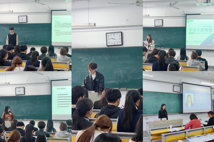 在主题陈述环节中,选手们根据不同赛道的要求精心准备了生涯发展报告、就业能力报告、求职简历等材料。成长赛道的选手熟练运用MBTI职业性格测试、霍兰德职业兴趣测试等,描绘自身的发展蓝图,并制定详实方案;就业赛道的选手则更加成熟稳重,陈述逻辑清晰,充分展现自身的思维、沟通、实践等能力,结合岗位认知,展示胜任岗位的综合能力。随后评委老师对选手的陈述展开提问,选手们精彩的见解层出不穷,充分展现了经管学子扎实的专业知识及优秀的综合素质。