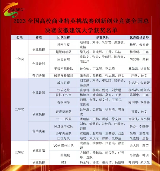 本网讯 11月5日,由中国贸促会商业行业委员会、中国国际商会商业行业商会和中国商业经济学会共同主办的2023年全国高校商业精英挑战赛创新创业竞赛全国总决赛落下帷幕。本次大赛共有来自全国400余所高校万余名师生参与,其中“双一流”“985” “211”院校60余所。我校学子与武汉大学、四川大学、华东师范大学、西北工业大学等高校学子同场竞技,首次组队参赛即在创业计划、创业模拟和营销模拟三个赛道累计斩获一等奖5项,二等奖9项,三等奖3项,获奖数量与质量位列全国前列。其中,经管学院刘伟、赵启赞、朱梦岩等同学组成的团队在创业模拟赛道以全国总决赛一等奖小组第一的成绩入围精英赛(入围率不到1%),受组委会邀请,将代表学校前往潍坊与全国精英切磋交流。