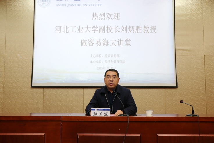 本网讯 11月17日上午,教育部高等学校公共管理类专业教学指导委员会委员、河北工业大学副校长刘炳胜教授做客ku游官方第108期易海大讲堂,为经管学院师生带来一场题为“工程管理专业发展中的问题、对策与展望”的精彩学术报告。学校党委常委、副校长蔡国军教授,重庆大学公共管理学院副院长、博士生导师汪涛教授,ku游官方特聘教授、东南大学土木工程学院博士生导师邓小鹏教授出席本期易海大讲堂。报告会由蔡国军教授主持,经管学院领导、骨干教师、研究生和本科生共200余人参加报告会。