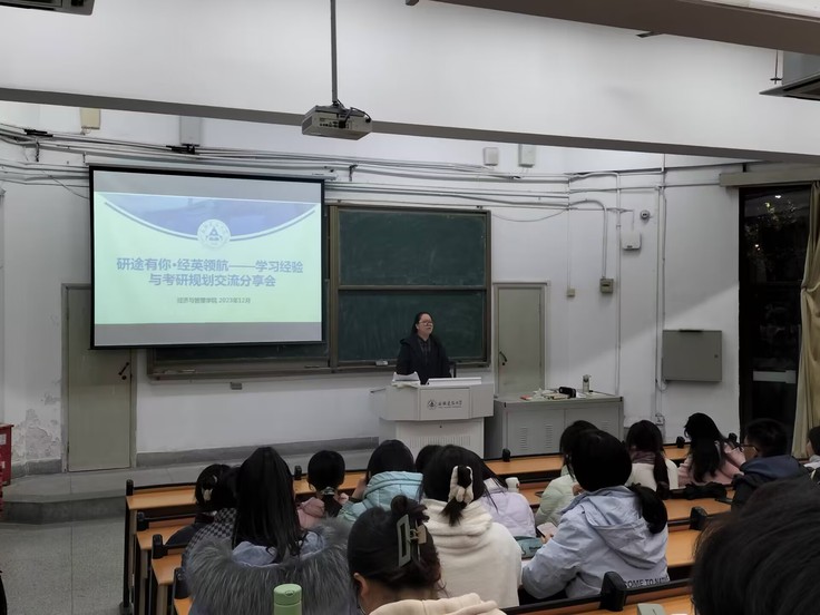 本网讯 为深入推进学风建设,引导大学生合理规划学习生活,明确考研目标,掌握规划方法,建立积极良好的备考心态,12月14日,经管学院在F楼118教室举办“经英领航,研途有你——考研与学业规划分享会”。学院各专业年级近200名低年级同学参加了活动。考取合肥工业大学硕士研究生的学院2019级财务管理专业孙悦同学和本年度国家奖学金获得者2021级财务管理专业洪慧敏同学作为嘉宾为大家做交流分享。