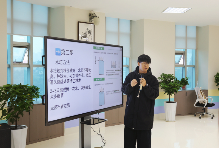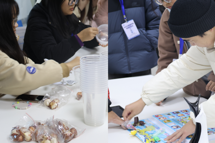 为提高同学们团结协作和动手能力,增进寝室成员之间的感情。本次活动以水培郁金香和扎染制作等独特方式展开,寝室成员共同培育一株郁金香,并记录其每个成长阶段。郁金香发芽、长高、开花的过程也象征着寝室成员之间感情的递进和升温。扎染活动中,各寝室作品独具创意,充分展现同学们天马行空的想象力和创造力。“洞洞乐”盲盒抽取活动在一片欢声笑语中开展,乐趣无穷,欢乐无限。