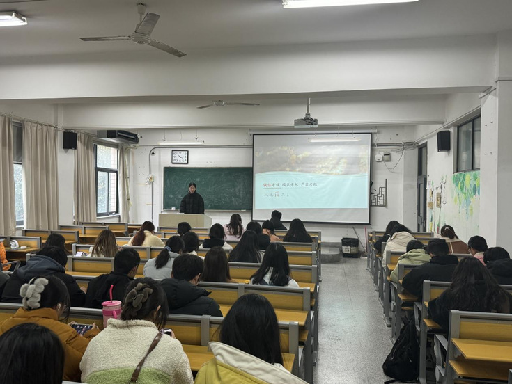 本网讯 在期末考试来临之际,为了加强考风考纪建设,充分发挥高校诚信教育的主导作用,提高同学们的安全意识,12月25日—12月29日,经济与管理学院2023新生班级开展诚信、安全教育主题班会。