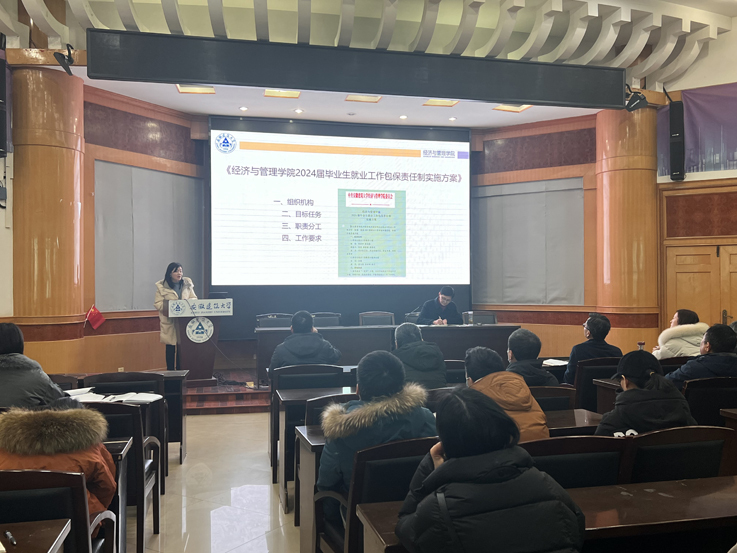 本网讯 2月28日,经管学院在建树楼三楼报告厅召开2024届毕业生就业工作推进会。学院领导班子成员、专业系负责人、学业导师、研究生导师和毕业班辅导员等全体教师参加会议,会议由学院党委书记陈国中主持。