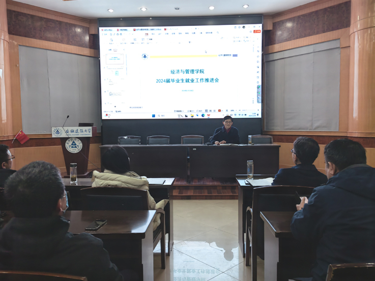本网讯 2月28日,经管学院在建树楼三楼报告厅召开2024届毕业生就业工作推进会。学院领导班子成员、专业系负责人、学业导师、研究生导师和毕业班辅导员等全体教师参加会议,会议由学院党委书记陈国中主持。