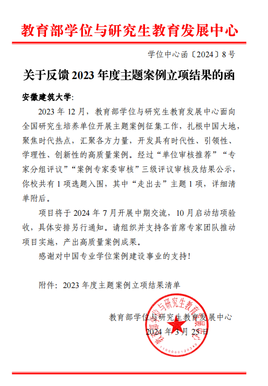 本网讯 2024年3月25日,教育部学位与研究生教育发展中心(简称教育部学位中心)正式公布2023年主题案例立项结果。我院章蓓蓓老师为首席专家牵头申报的选题《五通泽天下,带路惠世界:中国承包企业国际化发展与实践》获得“走出去”主题立项。
