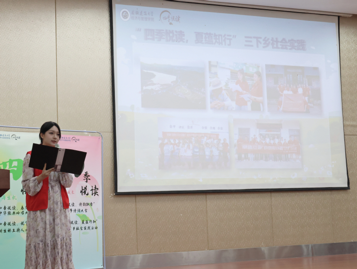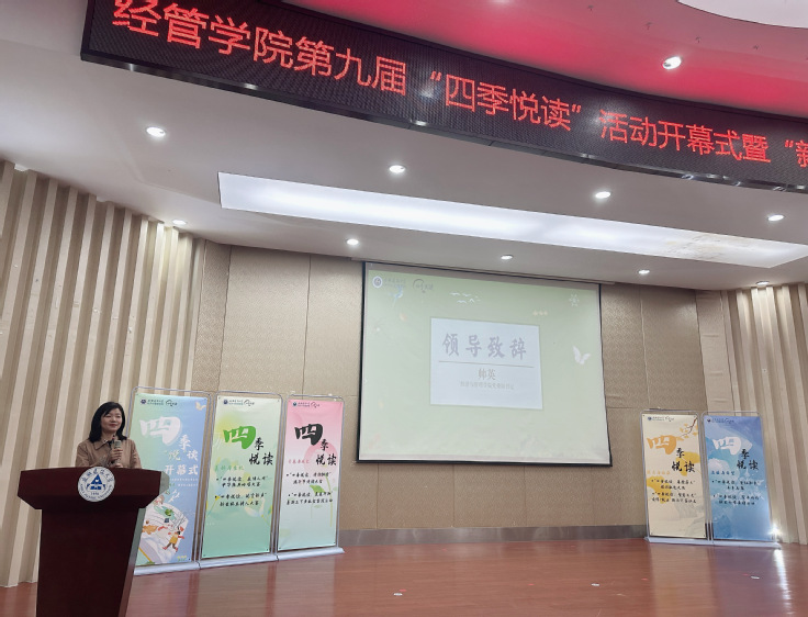 活动伊始,经管学院党委副书记帅英宣布四季悦读活动正式开幕,她号召大家主动关注、积极参与本届“四季悦读”系列活动,加强阅读引领,涵育阅读风尚,共创书香校园。