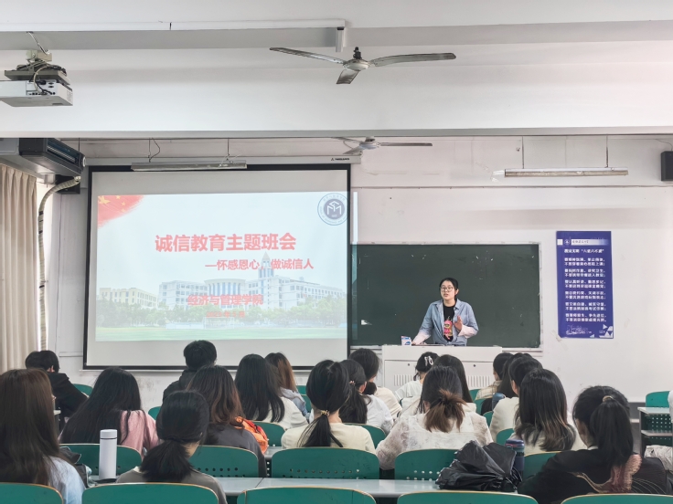 本网讯 为教育引导学生深入践行社会主义核心价值观,树立诚信理念,强化诚信意识,弘扬诚信美德,经管学院于2024年5月10日开展了以“怀感恩心,做诚信人”为主题的大学生资助诚信教育班会活动。