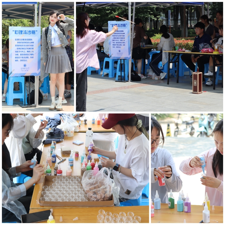 第三个环节心理流沙瓶则是一次心灵的创作与祝福。在这个环节中,同学们运用各种色彩的沙子在瓶子中绘制出独一无二的图案或场景,并附上自己亲手书写的祝福标签。这不仅是一次艺术的体验,更是一次心灵的表达与分享。同学们在创作过程中,将自己的心情、愿望和祝福融入其中,让流沙瓶成为传递爱与温暖的媒介。