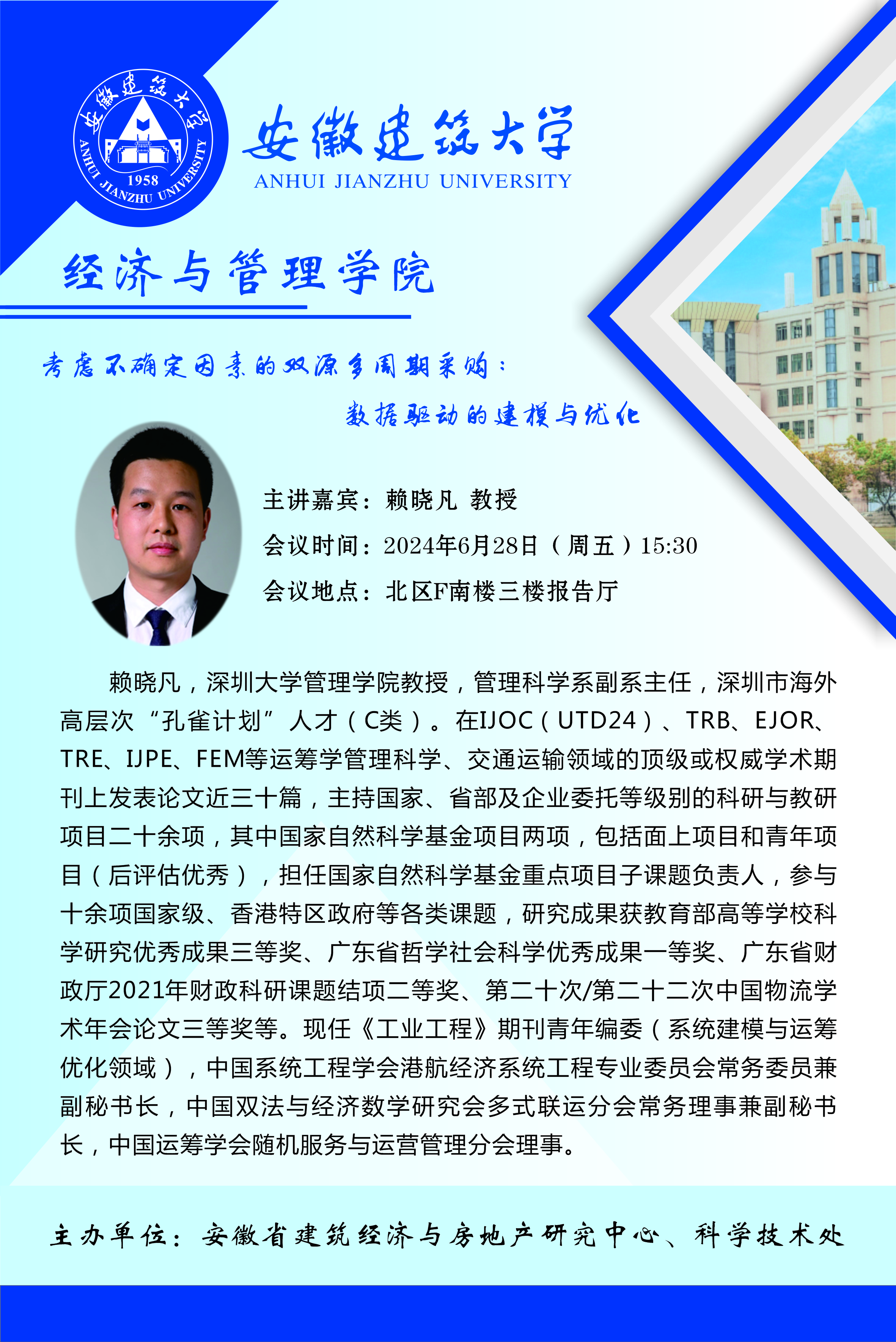 【预告】考虑不确定因素的双源多周期采购: 数据驱动的建模与优化