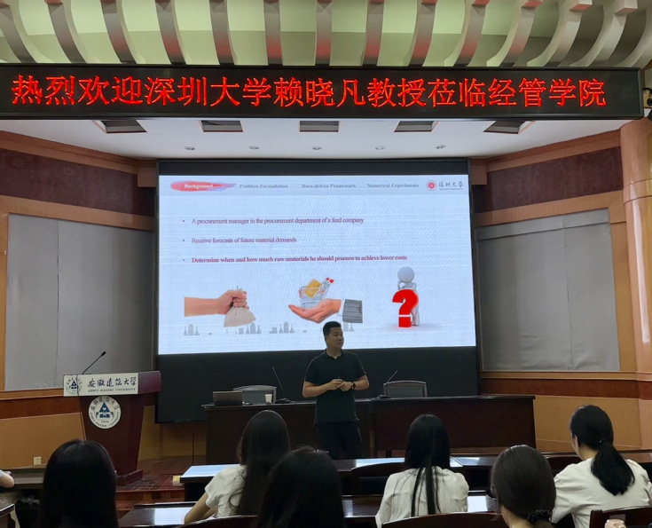 本网讯 6月28日,深圳大学管理学院赖晓凡教授应邀到经管学院举办题为“考虑不确定因素的双源多周期采购:数据驱动的建模与优化”的学术讲座。讲座由经管学院副院长章蓓蓓主持,学院教师、硕士研究生共80余人参加。