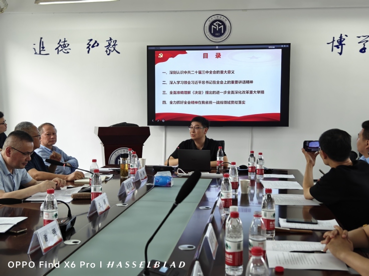 陈国中致欢迎词,对各位嘉宾和会员的到来表示热烈欢迎,对民建会员给予学院发展的关心和支持表示诚挚感谢。强调了学习贯彻党的二十届三中全会精神的重要性和紧迫性,鼓励大家将学习成果转化为推动工作、服务社会的实际行动。