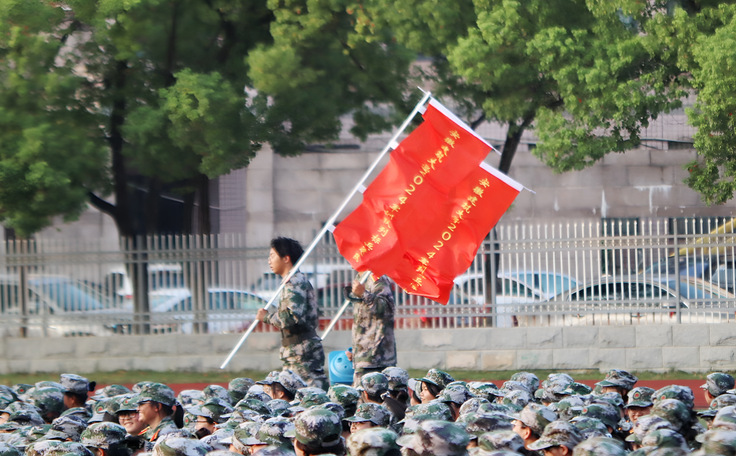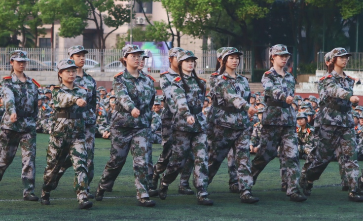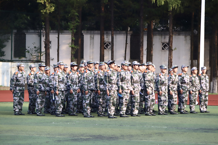 绿茵场上的军训队伍如同一幅幅流动的画卷,在阳光下闪耀着青春的光芒。稍息、立正、齐步走,队列整齐划一,每一步都踏出了青春的韵律。口号声此起彼伏,响彻云霄,充满了力量和决心,如青春的号角般,催人奋进。秋风轻拂,带来丝丝凉意,却无法吹散训练场上弥漫的火热气息。