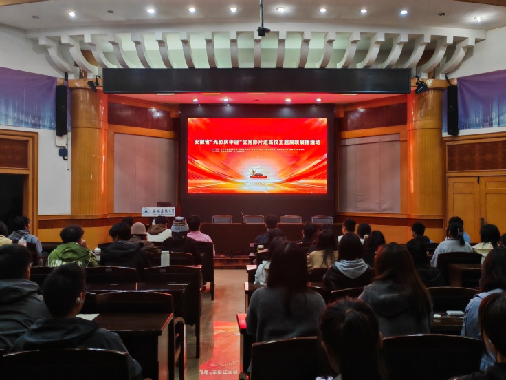 本网讯 为更好加强思想政治教育,培养学生爱国情怀。11月8日,安徽省“光影庆华诞”优秀影片进高校主题展映展播走进经管学院,为学生们带来了一场视觉与精神的双重盛宴。本次活动在建树楼3楼报告厅举行,120余名同学参与了观影。