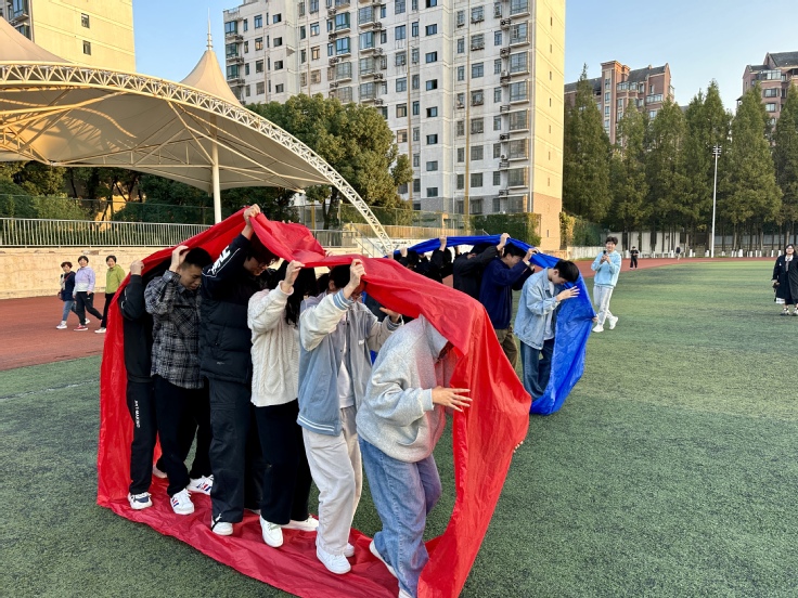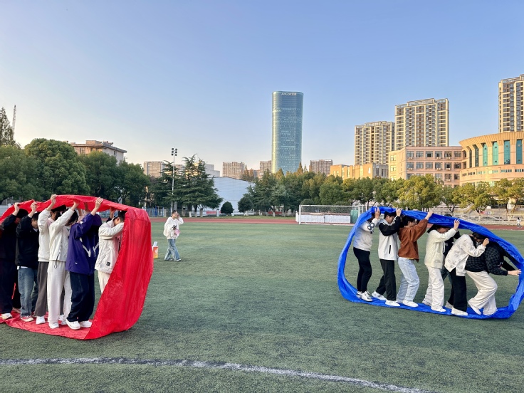 本网讯 为增强团队意识,增进新生间的友谊。11月7日,经管学院组织2024级学生代表于金寨路校区田径场举行素质拓展活动。活动分为团队建立、队徽设计、团建游戏三个环节进行。