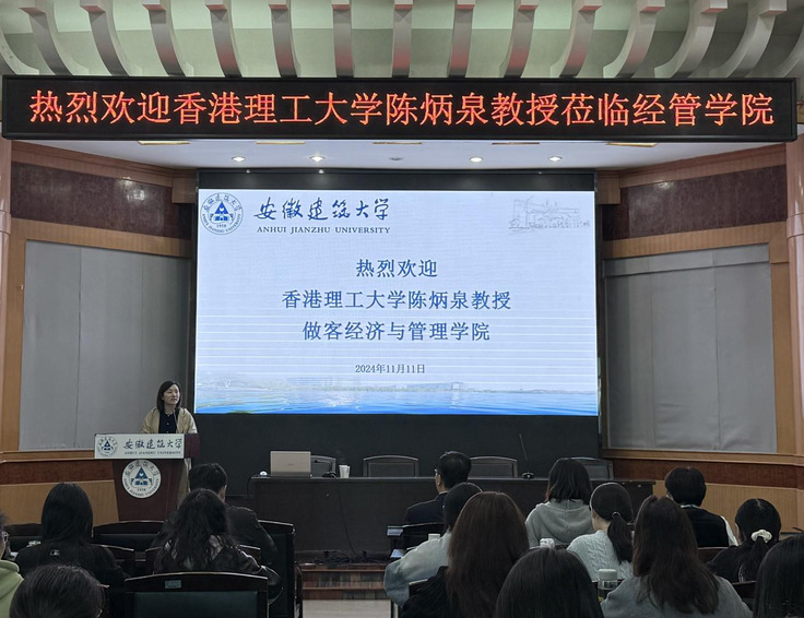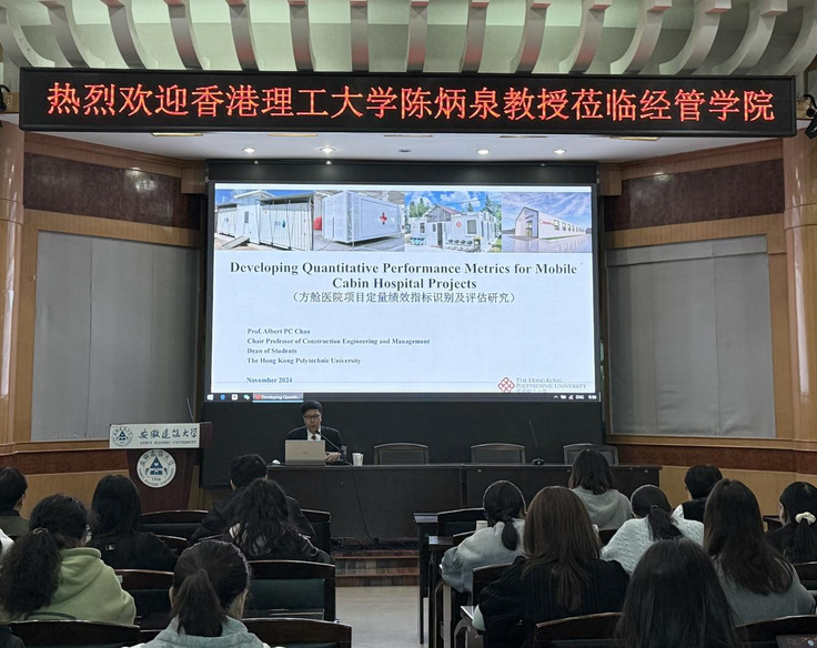 本网讯 11月11日,香港理工大学陈炳泉(Albert Chan)教授应邀到经管学院举办题为“Developing Quantitative Performance Metrics for Mobile Cabin Hospital Projects”(方舱医院项目定量绩效指标识别及评估研究)的专题讲座。讲座由经管学院副院长章蓓蓓主持,学院教师、硕士研究生共80余人参加。