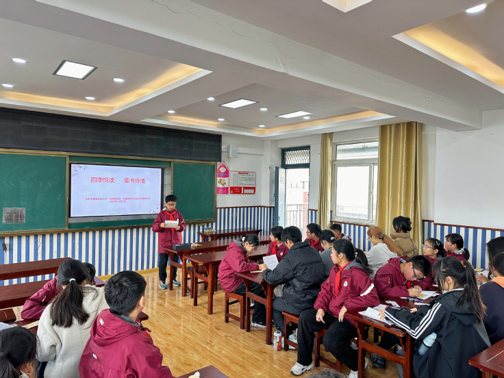 随着信件朗读的进行,大学生用温暖的声音传达出小学生对未来的憧憬与梦想,而小学生则表达了对学长学姐的崇拜与向往。六(1)班焦晨熙同学深情分享了他收到的信件。信中,2024级经济学专业石佳同学倾情表达了对阅读的热爱,推荐了几部近期阅读的佳作——《一个像海的地方》《七色花》和《138亿年的旅途》。她鼓励小学生们多读书、读好书,以培养深厚的阅读习惯,从而拓展知识的视野,丰富人生的内涵。同时,2024级经济学专业王少华同学也分享了六(3)班赵彧楠同学的信件,后者在信中深刻阐述了从阅读中获得的智慧与启迪,并坚定地表示:“书籍是生活中不可或缺的一部分。”这样的共鸣与思考让在场的每个人都感受到阅读的力量与意义。这一刻,时光仿佛凝固,悠扬的心声在空气中回荡,化作了彼此情感的纽带,交融出无尽温暖。