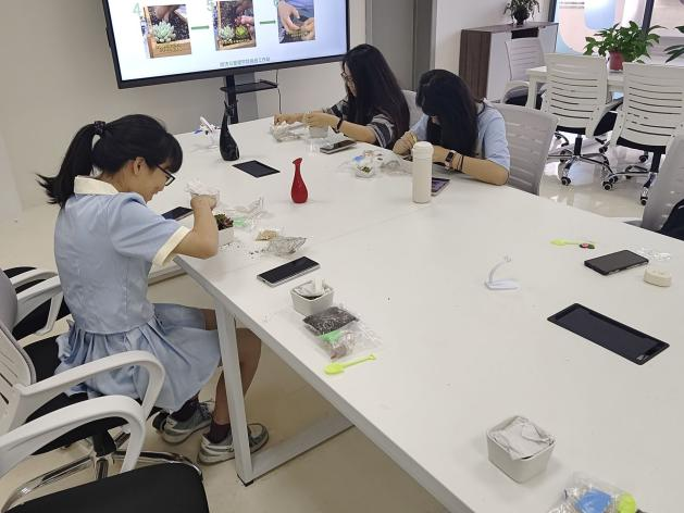 6月2日下午,系列活动第二场——多肉植物栽培小课堂如期举行。此次活动旨在培养同学们对多肉植物的喜爱与养护能力,让大家在忙碌的学习之余享受养花种草的乐趣。活动中,指导老师详细讲解了多肉植物的品种、生长习性、浇水施肥等养护知识,并现场演示了多肉植物的移植与盆栽技巧。同学们在指导老师的带领下,小心翼翼地挑选多肉植物,亲自进行移植和盆栽,体验了一把“植物小园丁”的乐趣。