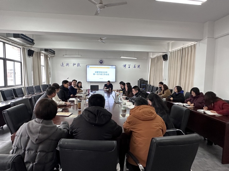 本网讯 为进一步明确2025年度的工作方向和目标,凝聚共识,推动学院高质量发展,2月20日,经管学院于建树楼404会议室召开新年第一次行政工作会议。学院领导班子全体成员、各科室行政人员及全体辅导员参加了会议。