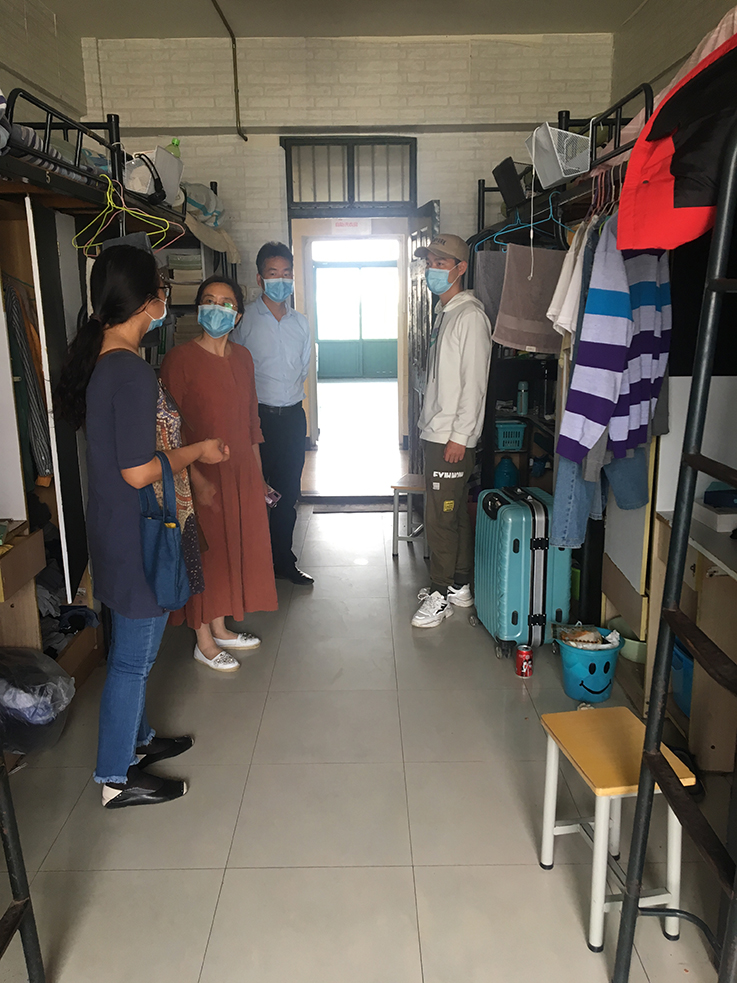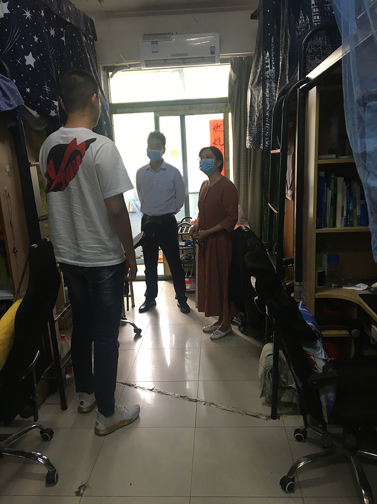 本网讯  为贯彻落实学生返校复学相关工作精神,了解学生返校情况,5月15日,环能学院党委书记王媛、副书记胡志龙及毕业班辅导员深入学生宿舍看望慰问返校学生。