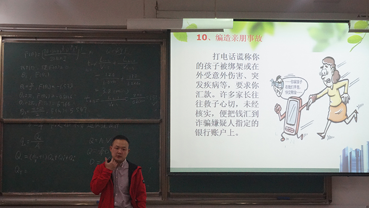主题教育班会上,各专业辅导员以身边的实例,结合PPT,通过师生交流的方式,向同学们详细讲解了电信诈骗的常见内容方式,遭遇电信诈骗时采取的防范措施及应对方法。提醒告诫学生在进行涉及财产交易的行为时要提高警惕,擦亮眼睛,分辨防范不法分子的诈骗举动。