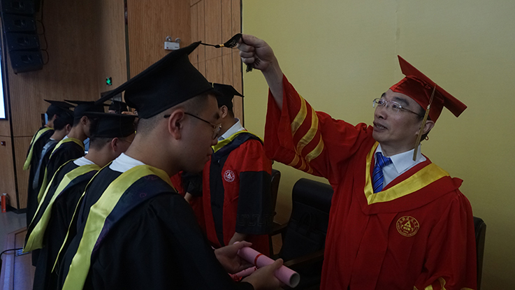孙道胜代表学校全体教职员工对2021届全体毕业生的顺利毕业予以衷心祝贺,向所有为同学们的成长成才付诸心血的师长、父母致以崇高的敬意,勉励全体毕业生要砥砺品德,完善人格,像孩子一样,永远保持一颗纯洁、善良和无畏的心,修好“德行”这门人生必修课,在自我升华中破茧成蝶。要勤学善思,终身学习,秉持追求真理的热情,坚守探索知识的初心,做一个快乐的“读书人”。要敢为人先,开拓创新,锐意进取,砥砺奋进,为祖国的强大贡献更多的创新支持。孙道胜最后说:现在起到本世纪中叶,我国将实现第二个百年目标,这恰是各位同学风华正茂的年华,也是祖国强盛与同学们个人命运紧密交织的时代,希望各位同学带着这鲜红的烙印走向波澜壮阔的征途,全身心投身于中华民族伟大复兴的中国梦中,开创属于自己的美好的未来。(作者:吴明轩,丁俊,汪格格;审稿人:胡志龙)