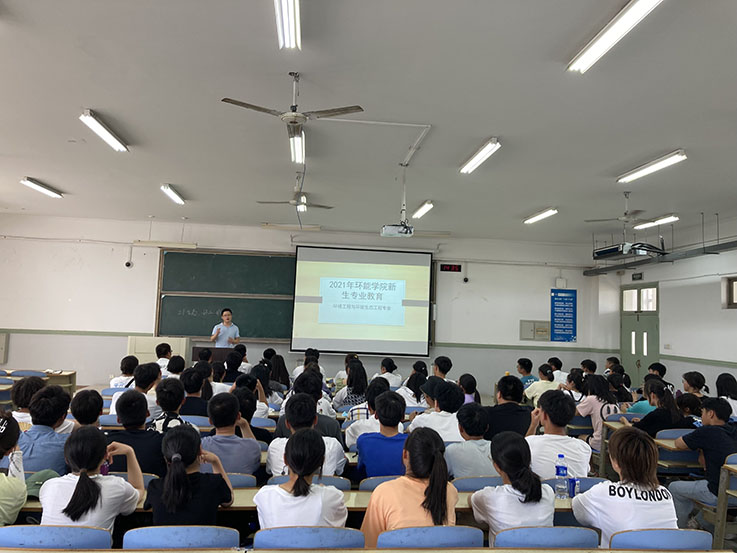 本网讯为帮助2021级新同学进一步了解所学专业,提高学习兴趣,为学风建设夯实基础,环能学院分专业召开了5场专业介绍会,来自学院四个专业系黄健、陈广洲、唐建设、胡浩威、王庚五位老师分别担任主讲。