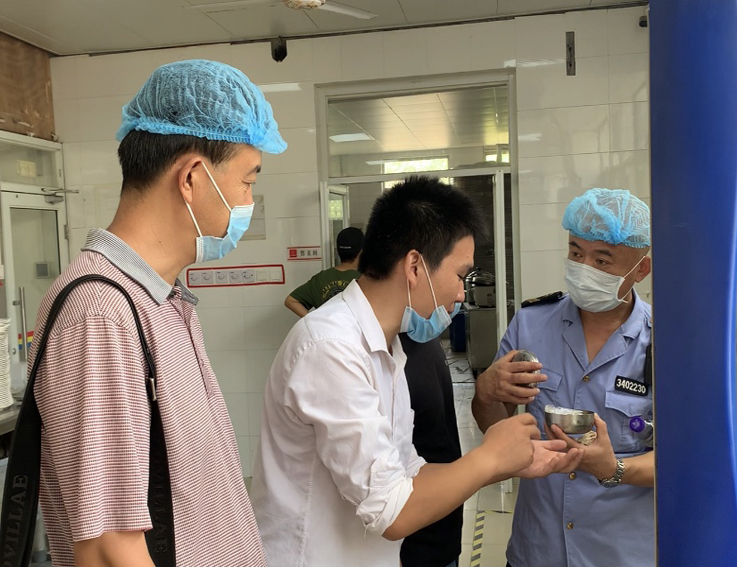 9月11日,合肥市经开区市场监督管理局锦绣市场监管所所长雷蒙带领检查人员来到我校,深入学生食堂进行秋季开学期间食品安全专项检查。后勤服务集团负责人和相关部门工作人员陪同检查。