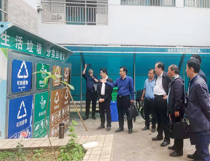 随后,调研组一行先后来到学生公寓、学校地埋升降式压缩垃圾站实地考察指导。蒋晓龙对学校垃圾分类工作所取得的成绩予以充分肯定,同时要求学校不断提升工作标准,严格按照有关规定,把垃圾分类各项工作抓实、抓细,确保学校垃圾分类工作取得实效,争做全省高校垃圾分类工作示范单位。