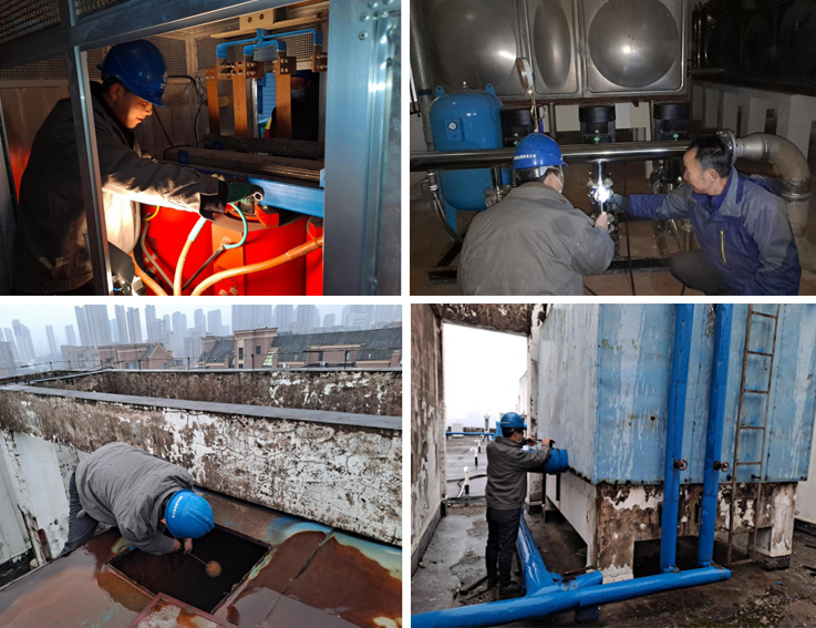 加强设备检修,保障能源安全。1月26日上午,后勤集团能源中心、饮食中心,组织专业服务人员,对南北校区配电房开展全面排查,更换击穿、绝缘度差的电缆头、刀闸等设备。对北区教工高层住宅楼、研究生公寓二次供水水泵、水箱进行全面检修,测试压力、包扎管道保温。对南北区食堂水电气再次检查,确保学校能源正常供应,保障用水用电用气安全。