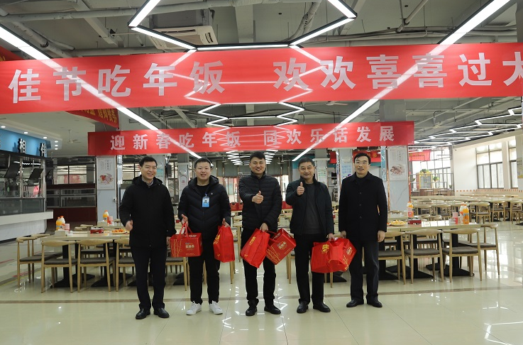 1月31日农历除夕,学校南北校区食堂张灯结彩,喜气洋洋,早早为留校值班职工准备了丰盛的年饭。校党委书记孙道胜、校长黄显怀莅临现场慰问值守人员,学校办公室、组织部、宣传部、保卫处、后勤服务集团领导与留校职工欢聚一堂,共享温馨年饭,共迎新春佳节。