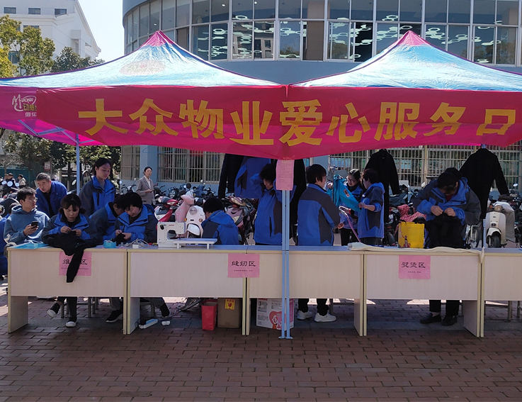 下午,公寓中心组织南北校区物业分别在南校区紫云食堂广场和北校区1号公寓门前继续开展爱心服务日活动。为师生提供免费理发、爱心缝补、衣服熨烫、小家电、自行车、雨伞维修等暖心服务项目,前来进行理发、缝补、维修的学生络绎不绝,与志愿者们说说笑笑,现场氛围温馨欢快,在春日更添温暖。