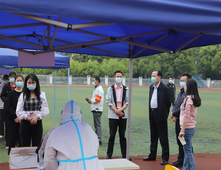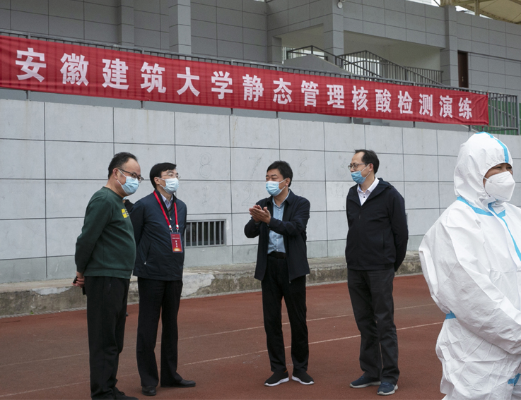 本网讯 4月17日,学校在南、北校区同时开展疫情防控校园静态管理核酸检测演练。校党委书记孙道胜,校党委常委、副校长蔡新立分别深入南、北校区演练现场,检查指导工作。
