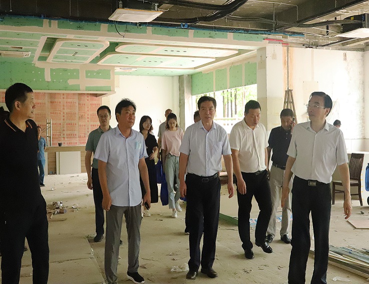 在施工现场,孙道胜、黄显怀听取后勤集团、工程施工单位暑期维修工作情况汇报,对施工安全、工程进度、施工质量认真询问和细致检查。在食堂,校领导仔细查看食堂维修改造装修情况,并就饭菜品种、价格、质量对后勤集团和餐饮单位提出高标准和严要求。