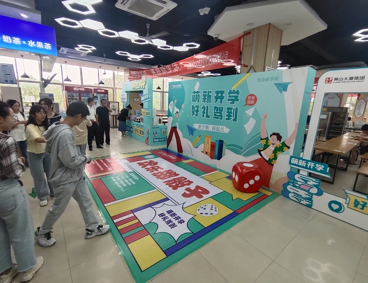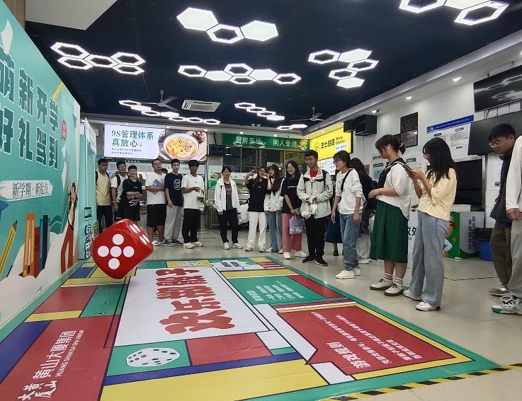紫云二楼食堂本着“以学生为本,为学生谋福利”的原则,举办“欢乐掷骰子”抽奖活动,准备了维尼熊、网红泡面碗、夏日礼包盲盒、萌新大礼包等丰富奖品,同学们参与热情高涨,在工作人员的指引下有序参加。