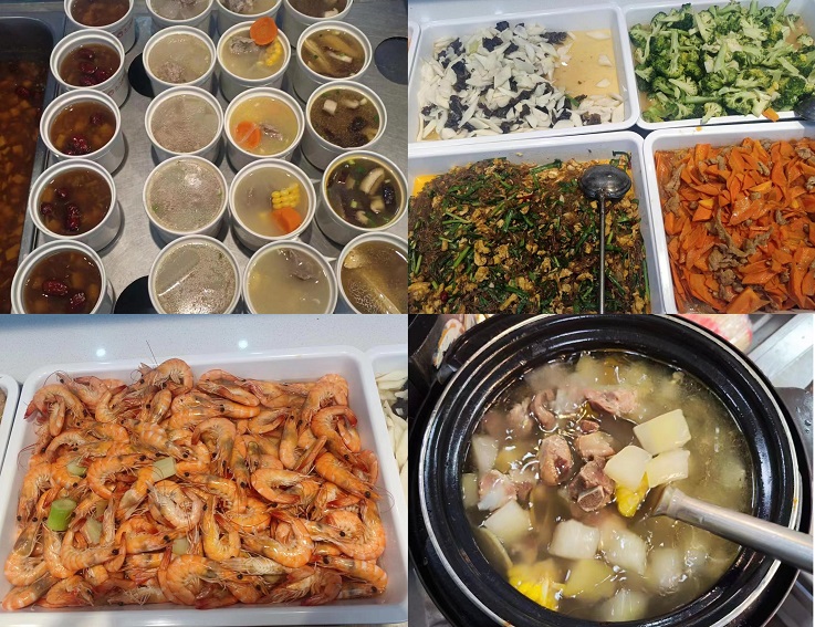 食堂就餐大厅内,通过张贴海报、悬挂横幅、电子投屏等形式积极营造营养日活动氛围,引导同学们在食堂用餐时,进行科学选餐,合理膳食,培养营养健康饮食意识。当天,各食堂分别推出玉米排骨汤、冬瓜肉圆汤、双红南瓜汤等营养美味汤羹,香味浓郁、色彩丰富,让人食欲大增;清蒸大虾、山药炒木耳、清炒西兰花等营养菜品,烹调方法选用蒸、炒、烧等形式,避免高温油炸,减少食材营养的流失,让同学们吃的营养,吃的健康。