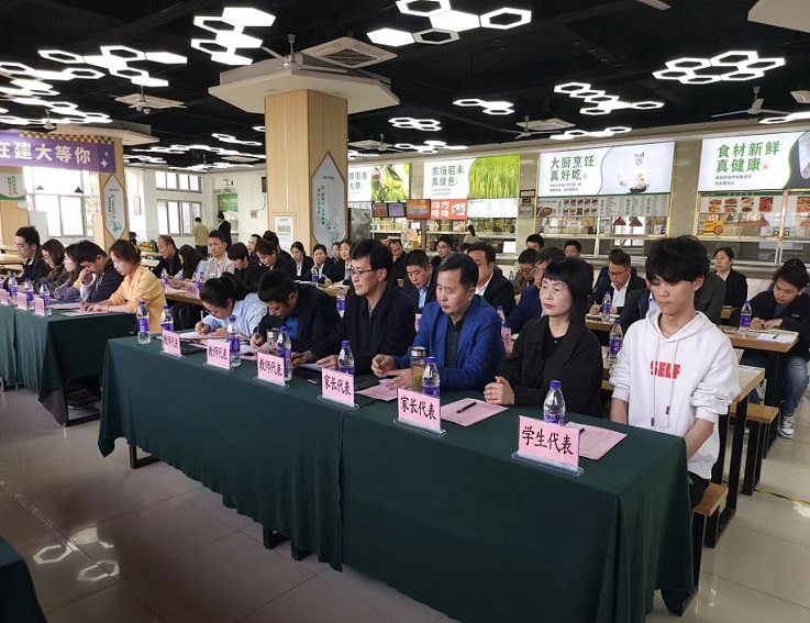 本网讯 为进一步做好饮食服务,广泛听取师生和家长意见和建议,推动我校膳食管理工作提质增效。4月9日,学校在紫云餐厅二楼食堂现场召开膳食管理委员会会议。校党委副书记、校长黄显怀出席会议并讲话,委员会成员部门负责人,教师代表、学生代表、学生家长代表以及驻校餐饮企业负责人、食堂经理等50余人参加会议。