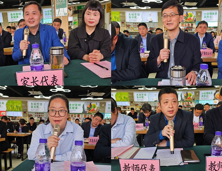 座谈会上,后勤管理处通报了学校食堂近期管理运营基本情况以及目前工作存在的不足及改进措施。各方代表积极发言,肯定了学校在食堂管理、学生就餐方面所做的努力,也提出了中肯的意见和建议。学生代表结合会前收集的同学意见,在饭菜质量、菜品口味、供餐分量等方面提出了许多宝贵的意见和建议;家长代表分享了孩子在学校食堂就餐情况及自身接触食堂的经历,希望学校能够进一步提高餐饮质量,建议引进多种菜品商户;教师代表从自身掌握的情况,在丰富菜品种类、打造特色品牌等方面提出了建议。