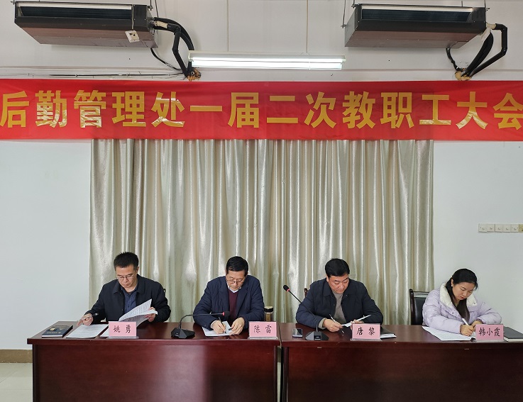 本网讯 2024年12月31日下午,后勤管理处在徽学楼1712会议室召开一届二次教职工大会。后勤管理处48名教职工参加大会,会议由后勤党总支书记陈雷主持。