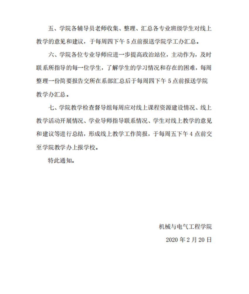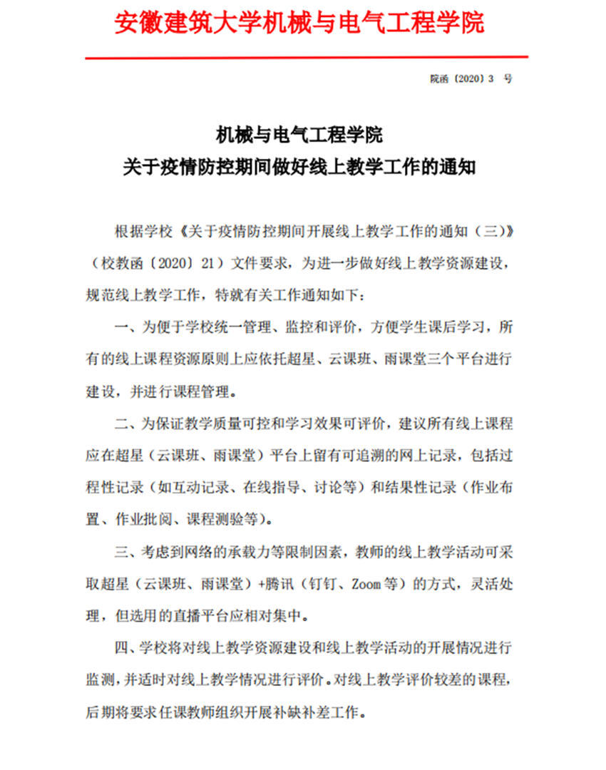 机械与电气工程学院关于疫情防控期间做好线上教学工作的通知