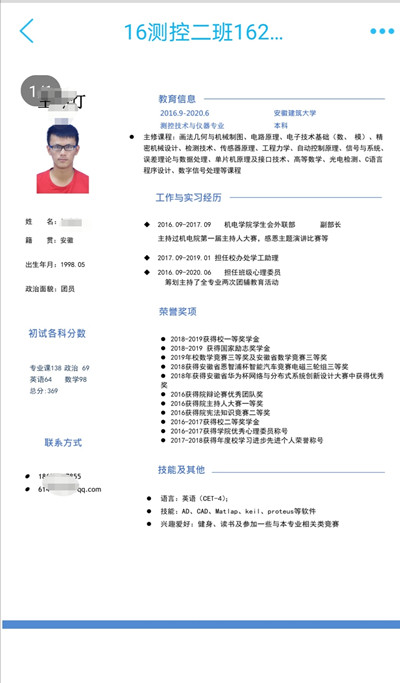 本网讯 现展示第一阶段推选出的线上“最美简历”优秀作品如下: