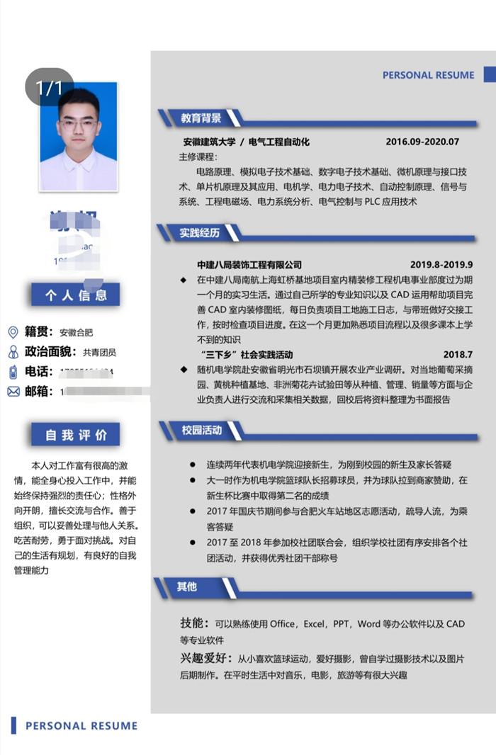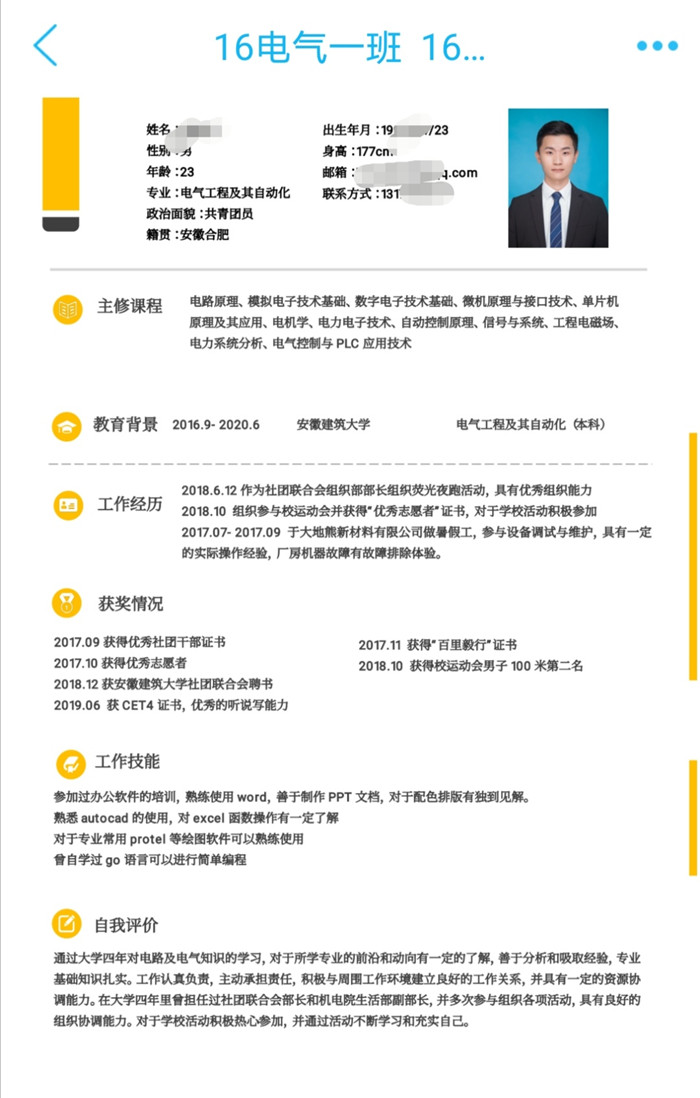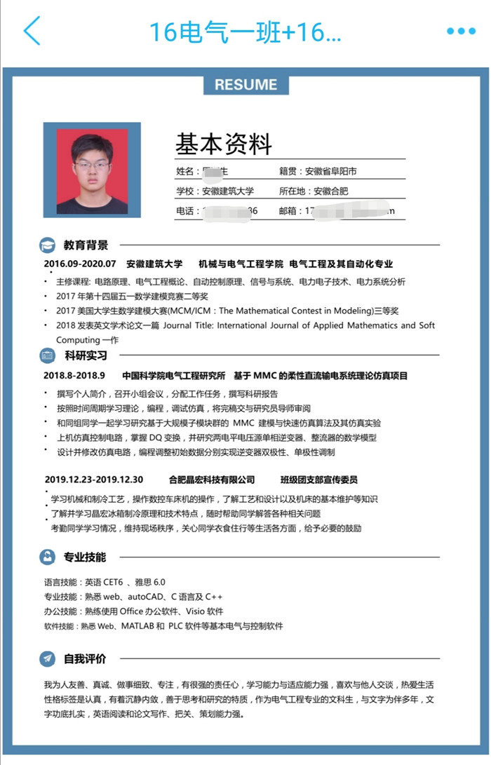 本网讯 现展示第一阶段推选出的线上“最美简历”优秀作品如下: