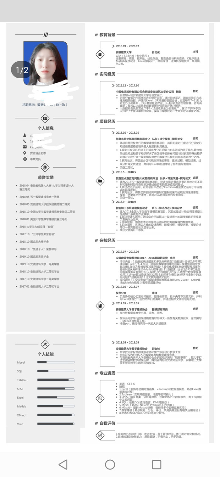 本网讯 现展示第一阶段推选出的线上“最美简历”优秀作品如下: